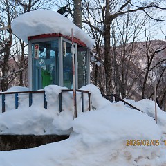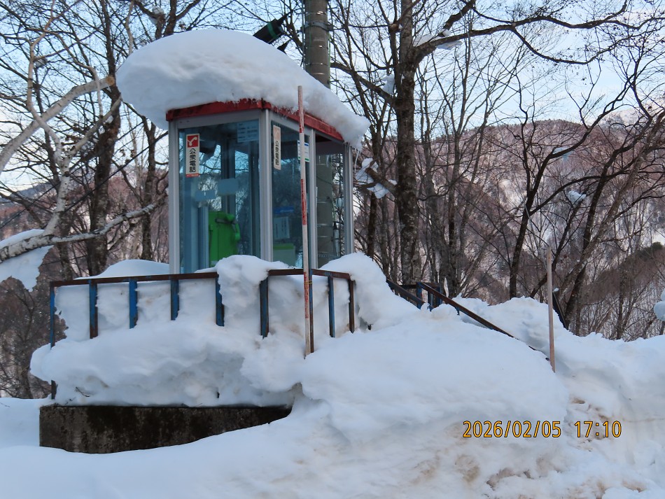 いつもの通り平湯峠の公衆電話は雪の中