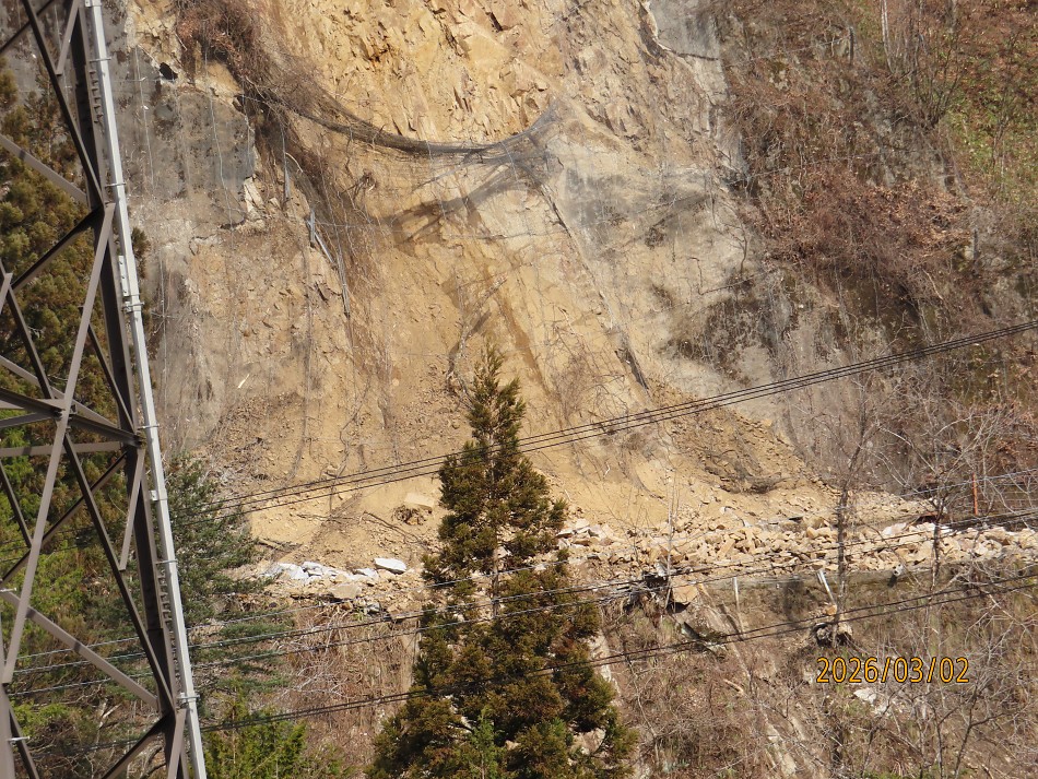 雪解けの山腹崩壊と思われますが復旧は今のところ未定とのことです